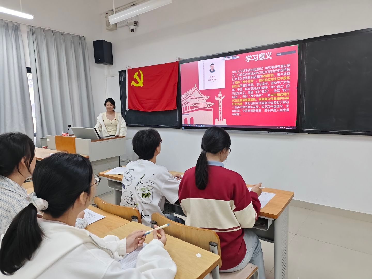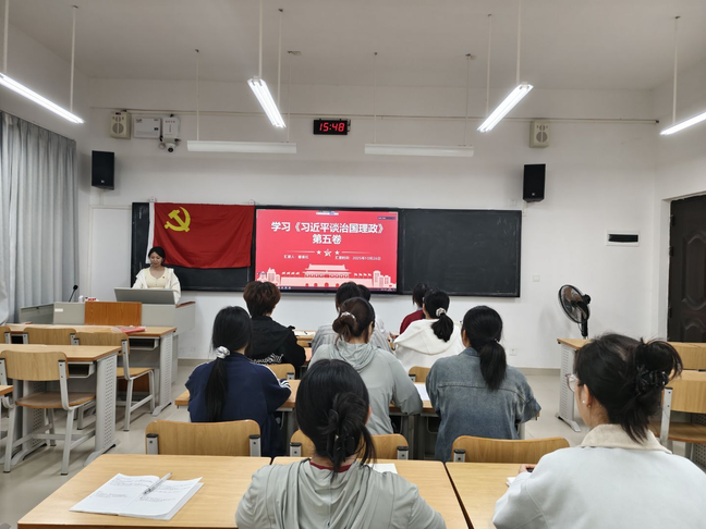 为深入学习贯彻习近平新时代中国特色社会主义思想,引导党员深刻领悟党的创新理论最新成果,2025年10月26日,自然资源与测绘学院房地产开发与管理系本科生党支部在实验楼2—B104开展《习近平谈治国理政》第五卷专题党课学习。本次大会由党支部书记鄢素红同志主持,支部全体党员参加。