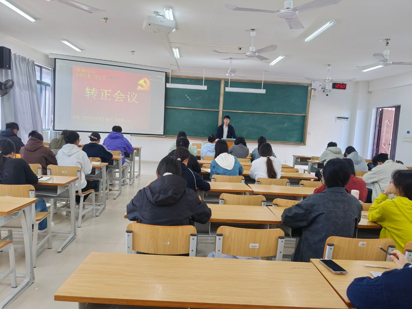 2025年12月5日,自然资源与测绘学院土地资源管理系本科生第二党支部在实验楼2C-203教室召开转正会议,讨论预备党员黎君昊同志的转正问题。会议由党支部书记黄琴同志主持,全体党员参加本次会议。