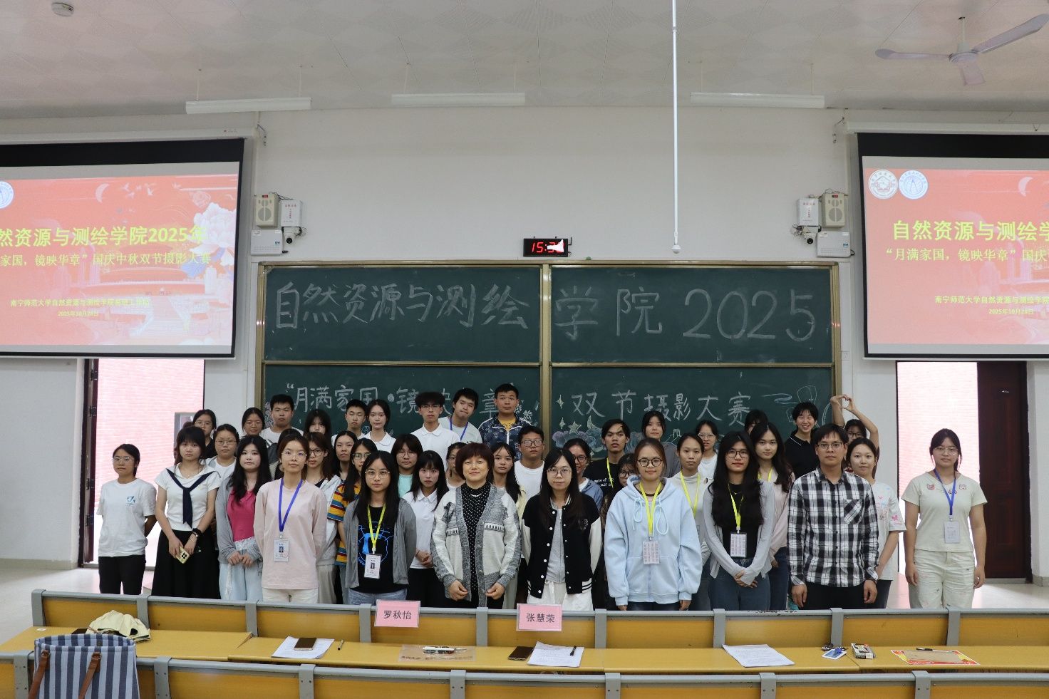 为弘扬家国情怀,鼓励学生以影像记录国庆、中秋双节美好时刻,传递“家国同庆、团圆和谐”的时代主题,2025年10月28日下午,自然资源与测绘学院于2号实验楼A105教室成功举办“月满家园 镜映华章”国庆中秋双节摄影大赛。本次活动得到全院各年级学生的积极响应,学院全体辅导员出席活动并担任评委。