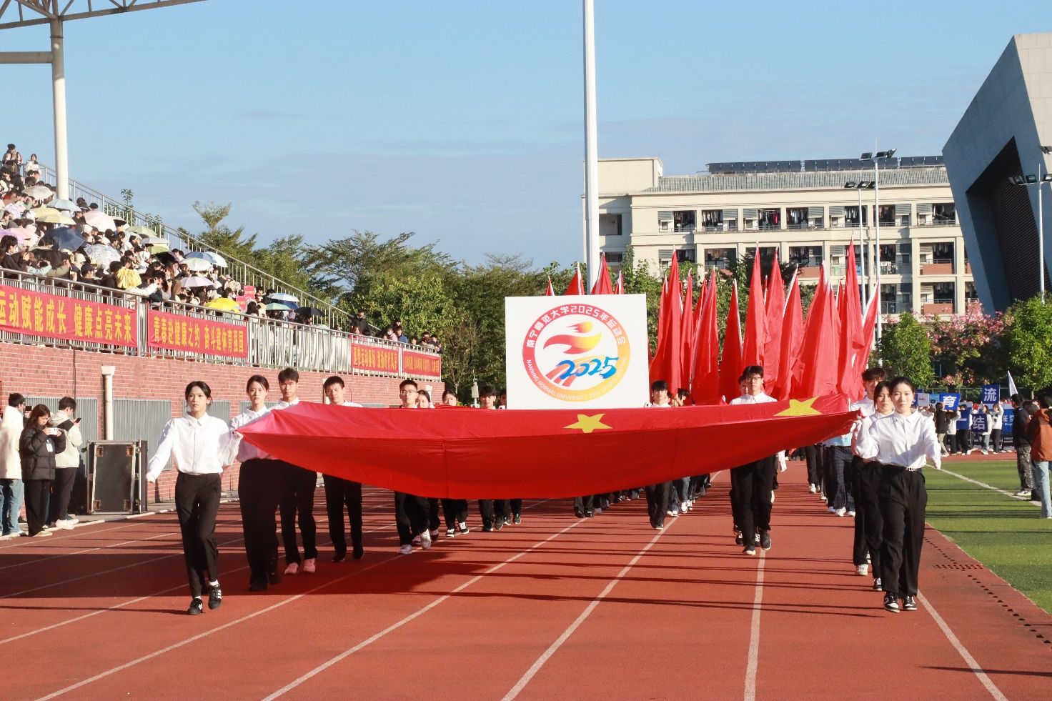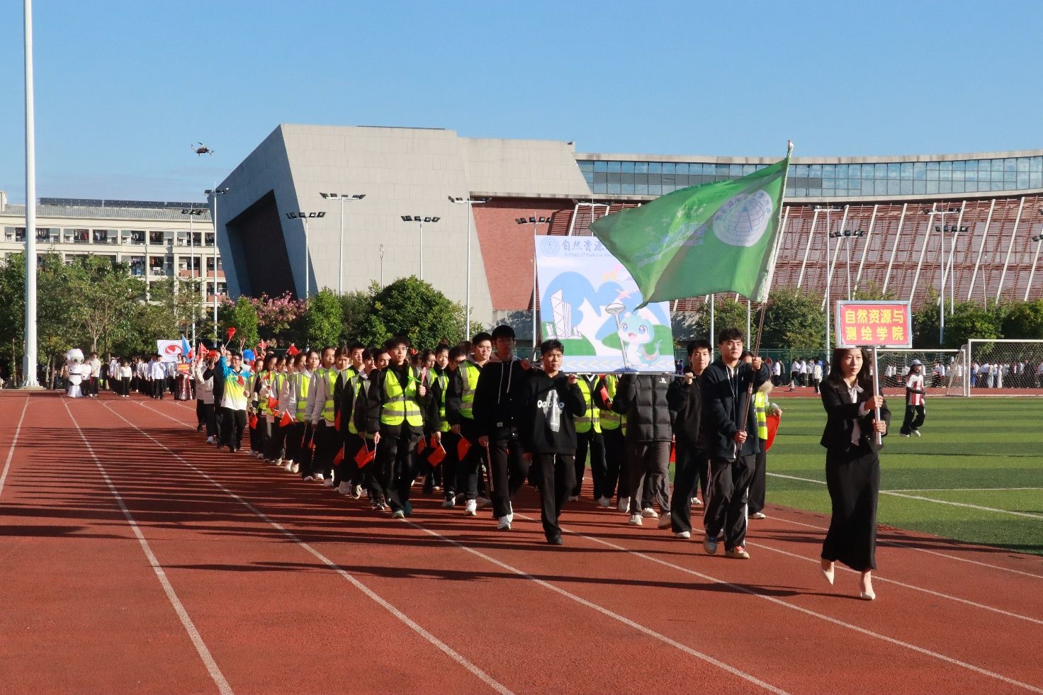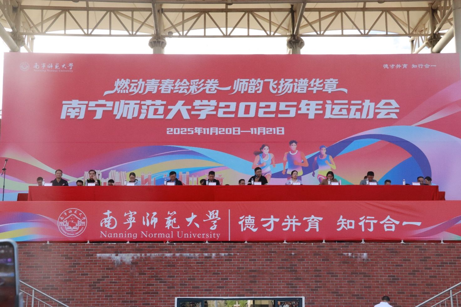 2025年11月20日,南宁师范大学校运会在武鸣校区松园田径场举行。开幕式上,激昂的旋律回荡在赛场,国旗护卫队护送国旗入场,各学院方阵依次亮相。自然资源与测绘学院健儿身着统一院服,身姿挺拔、神采飞扬,走过主席台时展现出青春的朝气。