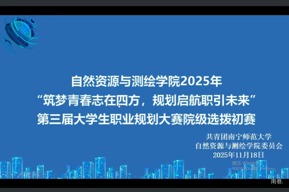 为扎实推进生涯教育与就业指导工作,强化学生职业规划意识、提升职业综合素养,助力学生明确成长方向、做好就业筹备,2025年11月21日,自然资源与测绘学院以线上会议的形式,成功举办第三届大学生职业规划大赛院级选拔初赛,学院全体学生积极参与,入围选手同台竞技展现职业成长蓝图。