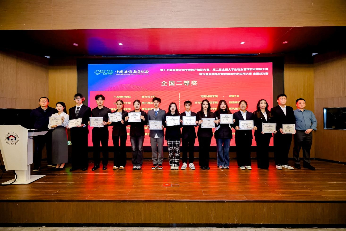 2025年11月23日,我校自然资源与测绘学院房地产开发与管理专业的学生在第十七届全国大学生房地产策划大赛全国总决赛中表现卓越,荣获全国二等奖。